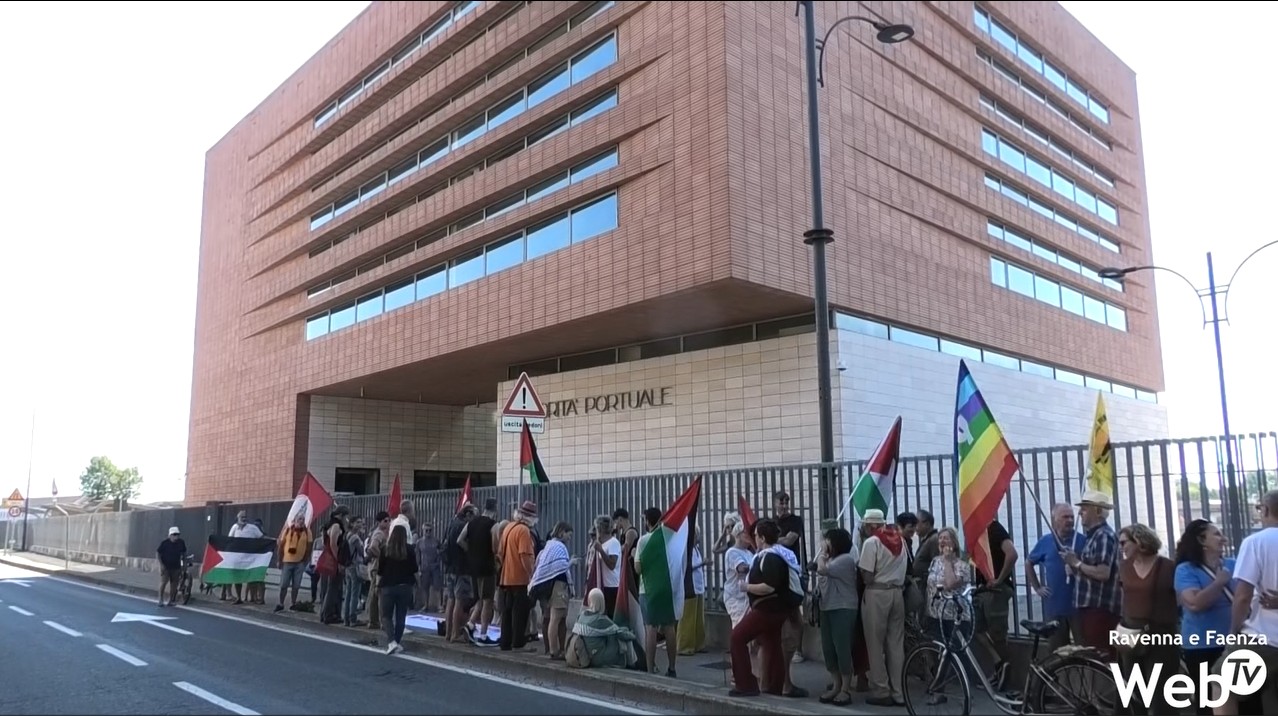 Oltre 100 manifestanti si sono radunati sotto la sede dell’Autorità Portuale per chiedere l’interruzione dei rapporti tra il Porto di Ravenna e l’azienda israeliana che produce i droni Rafael