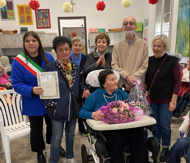 Erano presenti accanto a numerosi familiari l’assessora alle Politiche sociali Veronica Valmori, la coordinatrice della struttura Greta Ghetti e gli operatori dell’Asp dei Comuni della Bassa Romagna, che le hanno voluto portare il saluto dell’Amministrazione comunale e della struttura che la ospita.