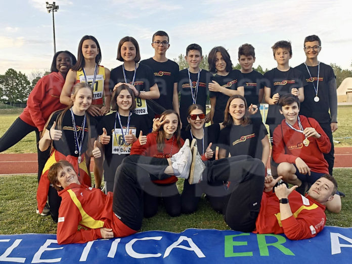 Sono 12 i titoli provinciali vinti da Atletica Ravenna nei Campionati Individuali e di Società per le province di Ravenna e Forlì-Cesena, tenuti questo weekend a Faenza per gli under 14 ed a Ravenna per gli under 16. In entrambi i meeting la società giallorossa è risultata la più numerosa, con ben 83 giovani atleti in gara. Un gran bel risultato che conferma la crescita del movimento dell’atletica leggera in Romagna, con Atletica Ravenna sempre più protagonista. Tornando ai brillanti risultati ottenuti dalla compagine del presidente De Lorenzi, riportiamo tutti i nuovi campioni provinciali, segnalando comunque che molti altri atleti ravennati hanno ottenuto il record personale o sono saliti sul podio. Sabato pomeriggio, a Faenza si sono laureati campioni provinciali nelle categorie ragazzi/e Giorgio La Cala (3:11.8) e Noemi Giacomini (3:28.4) nei 1000 metri; Giorgia Guberti nel salto in lungo (4,05), Stefano Zanotti nel peso 2 Kg (9,60), Davide Benini nei 60 ostacoli (10.3), la staffetta 4×100 ragazze con Bianca Boschetti, Anna Bosatra, Noemi Giacomoni ed Emma Giacomoni (59,8). Nella classifica di società Atletica Ravenna si è imposta tra i ragazzi ed è salita sul podio, seconda, tra le ragazze. Nella competizione tenutasi il 1° maggio, a Ravenna, altri 6 titoli provinciali, questa volta nella categoria cadetti/e: Francesco Visani nel salto in alto (1,62), Enrico Vernarelli nel lancio del Giavellotto (38,67), Giulia Alberani nel salto in alto (1,40), Ginevra Santangelo nel lancio del martello (25,04), la staffetta 4×100 cadette con Angelica Antonioli, Maddalena Soglia, Chiara Gurioli, Erika Gentile e la staffetta 4×100 cadetti con Mattia Mazzotti, Simone Magnani, Massimiliano Pezzani, Leonardo Prati.