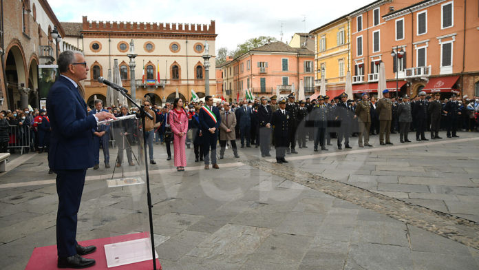 Alle 11 in piazza del Popolo saranno deposte le corone alla lapide dei partigiani caduti per la liberazione dal nazifascismo. Interverranno: Castrese De Rosa, prefetto della provincia di Ravenna; Michele de Pascale, sindaco e presidente della Provincia di Ravenna; Renzo Savini, presidente provinciale Anpi di Ravenna. È inoltre prevista un’esibizione della Banda musicale cittadina.