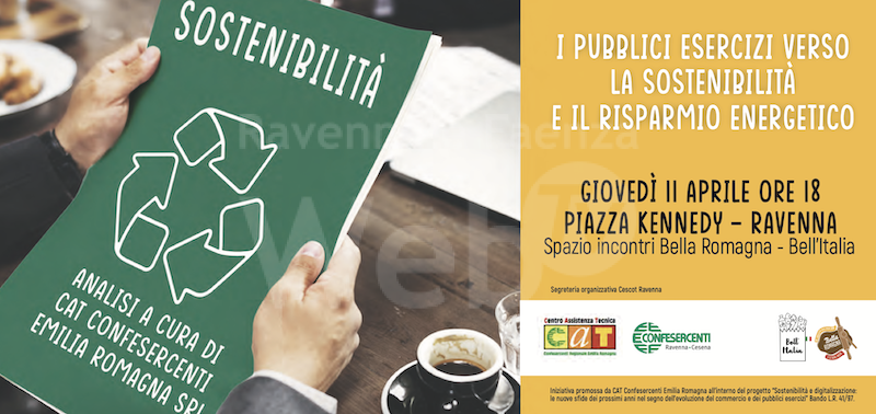 A Ravenna, giovedì 11 aprile alle ore 18, nell’accogliente cornice di piazza Kennedy a Ravenna, presso lo Spazio Incontri di Bella Romagna/Bell’Italia, all’interno dell’omonima manifestazione organizzata da Confesercenti Ravenna-Cesena, si terrà un incontroorganizzato da Cat Confesercenti E.R. sui temi del risparmio energetico rivolto ai gestori di bar e ristoranti dal titolo: “Ristoranti e bar virtuosi della transizione ecologica? Suggerimenti e buone pratiche per risparmiare nelle bollette ed evitare sprechi.I Pubblici Esercizi della Regione Emilia-Romagna verso la sostenibilità e il risparmio energetico”.
