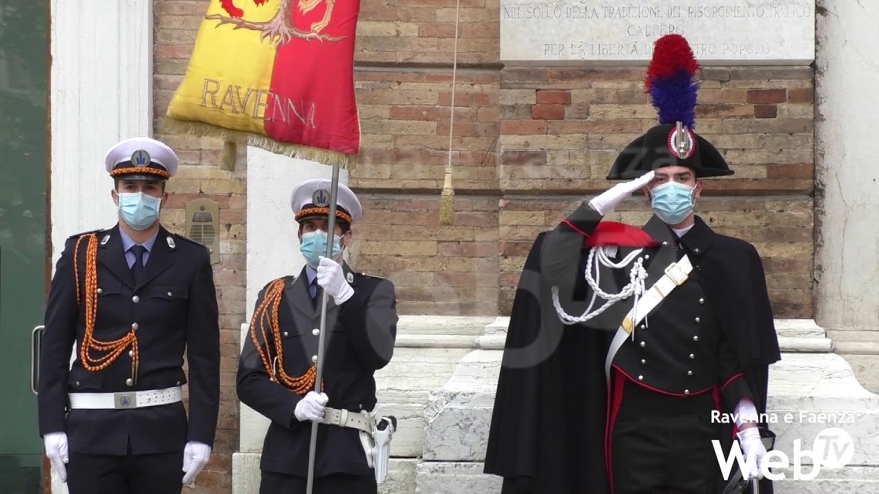 Davanti alla lapide in memoria dei caduti della Seconda Guerra Mondiale sono state deposte le corone in omaggio a chi ha perso la vita durante la guerra, sulle note dell’inno nazionale italiano. Alla cerimonia, che si è svolta in assenza di pubblico, hanno preso parte  Michele de Pascale, sindaco e presidente della Provincia di Ravenna, Enrico Caterino, prefetto di Ravenna, Livia Molducci, presidente del Consiglio comunale di Ravenna e Ivano Artioli, presidente provinciale dell’Anpi di Ravenna.
