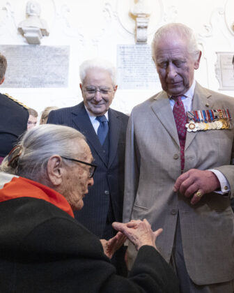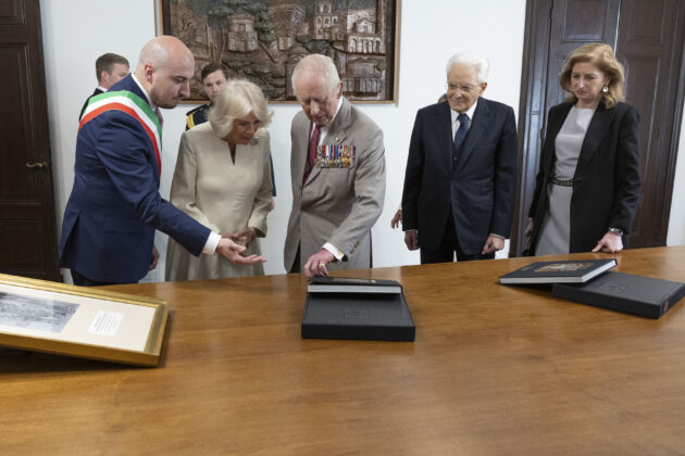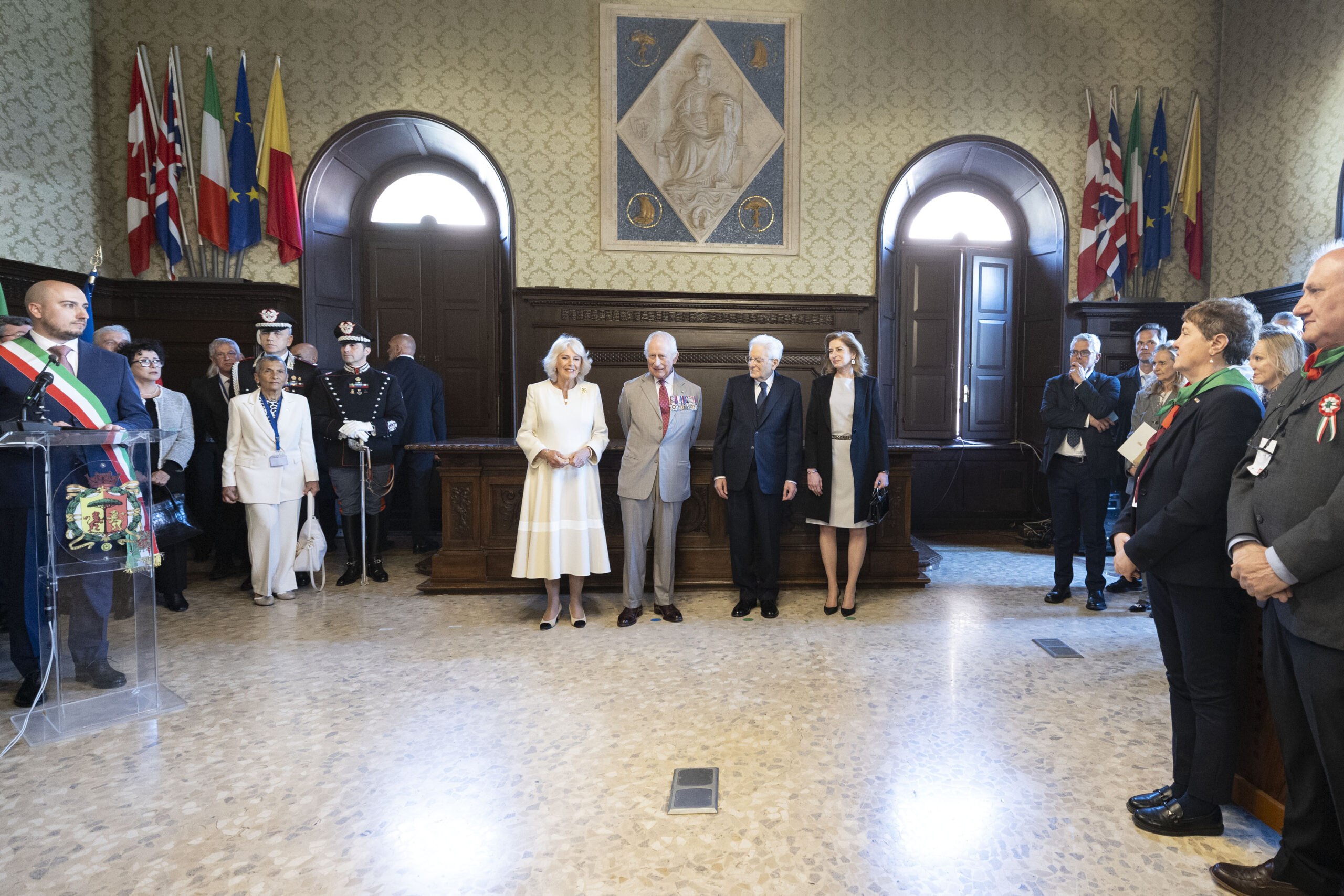 Lo scambio di doni è avvenuto a Palazzo Merlato, dove, insieme al Presidente Sergio Mattarella, Claudio e Camilla hanno incontrato le associazioni di partigiani e di veterani della Seconda Guerra Mondiale.