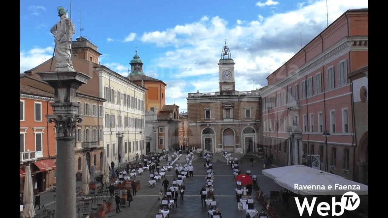 Bar, palestre, discoteche ristoranti: tutte le categorie maggiormente colpite dalle restrizione anti-covid si sono radunate questa mattina in Piazza del Popolo per partecipare al flash mob organizzato da Confcommercio e Confesercenti della provincia di Ravenna. Ben 80 tavoli sono stati posizionati nella piazza, e ogni partecipante all’iniziativa vi ha collocato sopra uno o più oggetti per rappresentare il proprio lavoro. Il flash mob fa parte di una serie di iniziative messe in campo da Confcommercio e Confesercenti a sostegno delle categorie per dare voce a tutta l’amarezza degli imprenditori del territorio, che chiedono di poter tornare a lavorare nel rispetto dei protocolli di sicurezza.