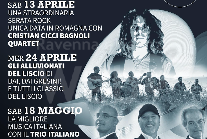 La rassegna prosegue con la serata di mercoledì 24 aprile con l’esordio dal vivo dell’Inno del Team Gresini Dai, dai Gresini, suonato dal vivo dagli Alluvionati del Liscio che intratterranno il pubblico con oltre due ore di grande liscio e musiche da ballo, mentre sabato 18 maggio la rassegna si chiude con il ritorno del pop italiano con il Trio Italiano.