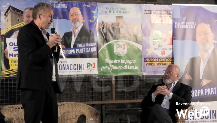 Il candidato sindaco Mattia Missiroli e il candidato alle europee Stefano Bonaccini insieme alla Torre San Michele per parlare di alluvione, turismo, dei cambiamenti passati e futuri di Cervia e delle rispettive proposte di candidatura. L’incontro è andato in scena giovedì sera nell’ambito della campagna elettorale del centrosinistra per le elezioni comunali di Cervia e per le elezioni al Parlamento Europeo.