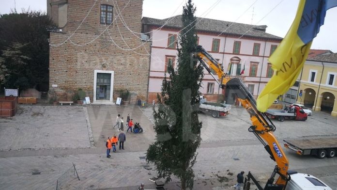 E’ arrivato il grande abete rosso donato a Cervia da Pinzolo-Madonna di Campiglio, provincia di Trento, comune legato al nostro tramite un Patto di Amicizia.