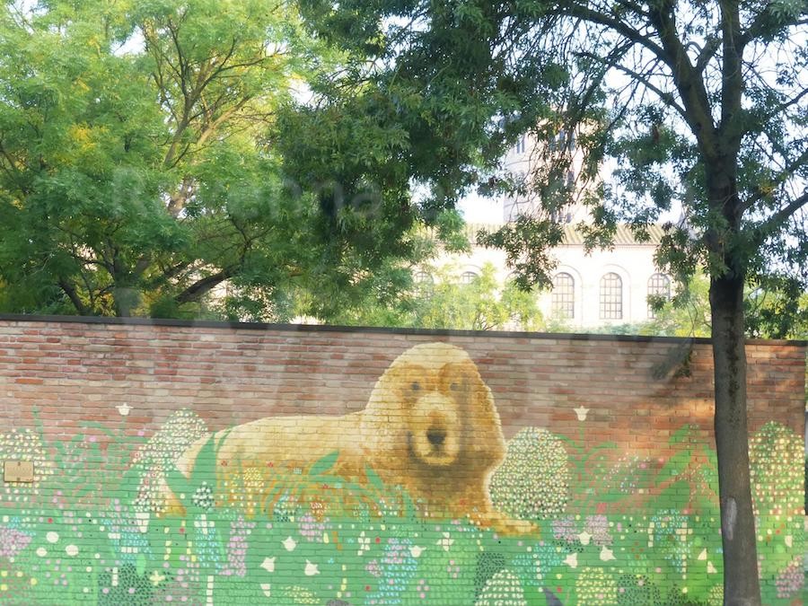 Intitolato “VIVA LOLA”, il murale è stato commissionato dalla famiglia di Lola, nel cui nome sono state effettuate tante opere benefiche, all’artista ravennate Nicola Montalbini, ed è stato realizzato nel luogo in cui la cocker spaniel ha trascorso gran parte della sua lunga vita. La dimensione dell’opera, 9 metri di lunghezza x 3 di altezza, è stata eseguita con la tecnica della pittura a mano su laterizio e riprende anche alcuni temi floreali presenti nei mosaici dell’abside della vicina Basilica.