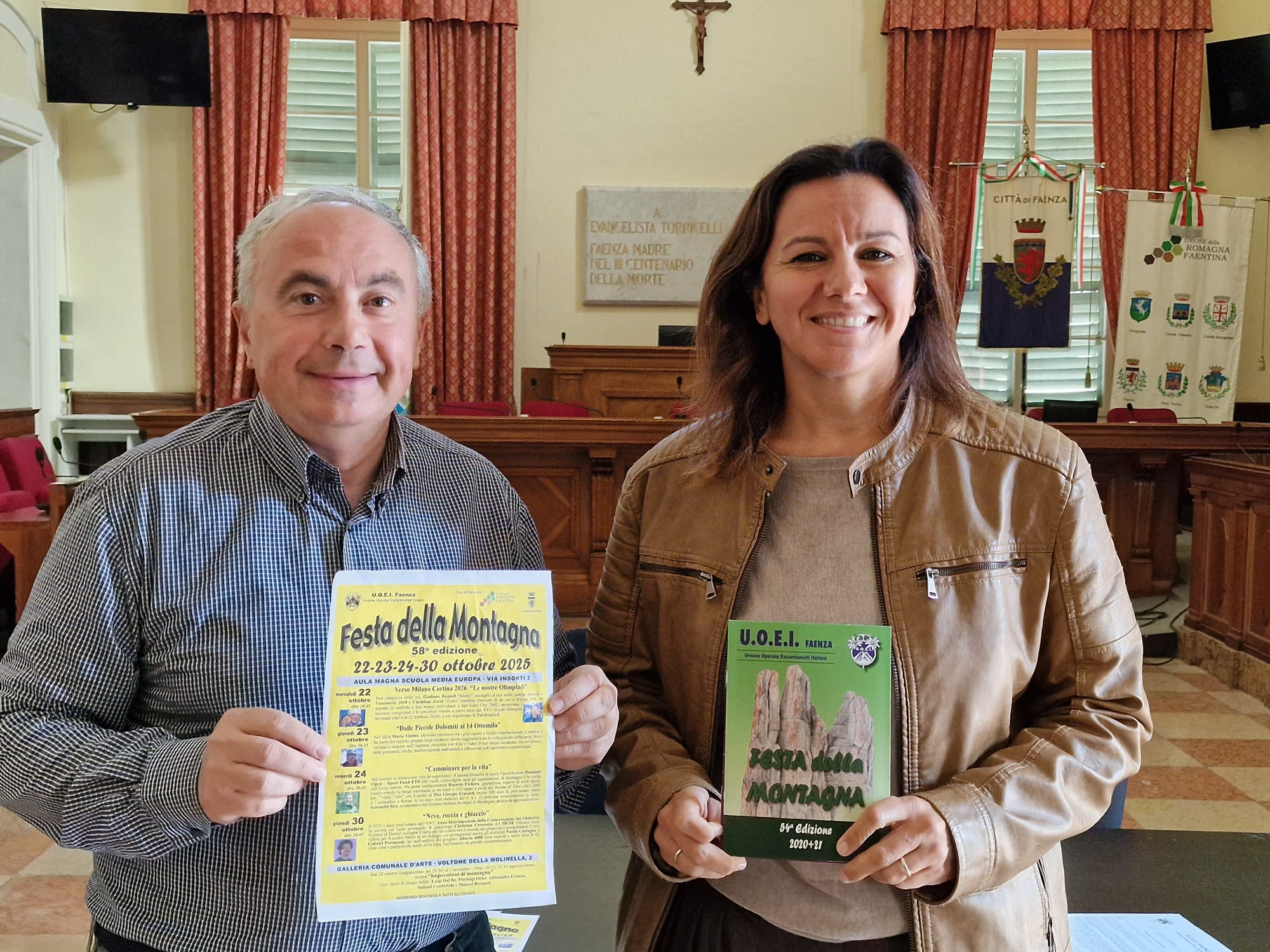 Saranno Giuliano Razzoli e Christian Zorzi ad inaugurare quest’anno la Festa della Montagna dell’U.O.E.I. Faenza. Dal 22 al 24 ottobre la festa andrà in scena nell’Aula Magna della scuola media Europa. Sarà anche occasione per ricordare, nel centenario della morte, Pier Giorgio Frassati, al quale è dedicato un sentiero a Fontana Moneta. Il 30 ottobre si terrà un ulteriore incontro, dedicato all’Anno Internazionale della Conservazione dei Ghiacciai. Come ogni edizione, alla Molinella, sarà in programma una mostra. In esposizione, fino al 3 novembre, immagini fotografiche di Pierluigi Orler Della Sega, Alessandro Gruzza, Samuel Confortola, Manuel Bernard e Luigi Dal Re