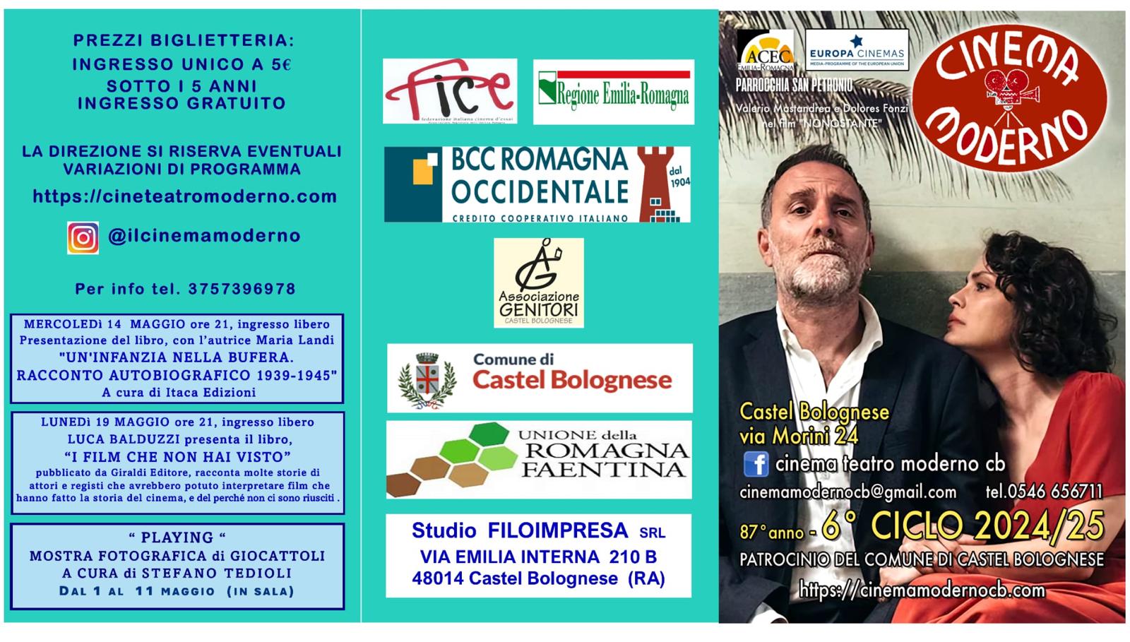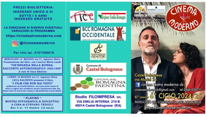 Parte a Pasqua il sesto e ultimo ciclo 2024/2025 del cinema Moderno di Castel Bolognese, che anche in questa stagione ha fatto registrare un bilancio più che lusinghiero a livello di partecipazione del pubblico.