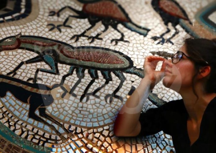 L’artista pistoiese Roberto Beragnoli l’ha realizzata nell’ambito della Biennale del Mosaico contemporaneo di Ravenna, presentando un complesso di edifici che circondano una Domus Romana coperta da mosaici.