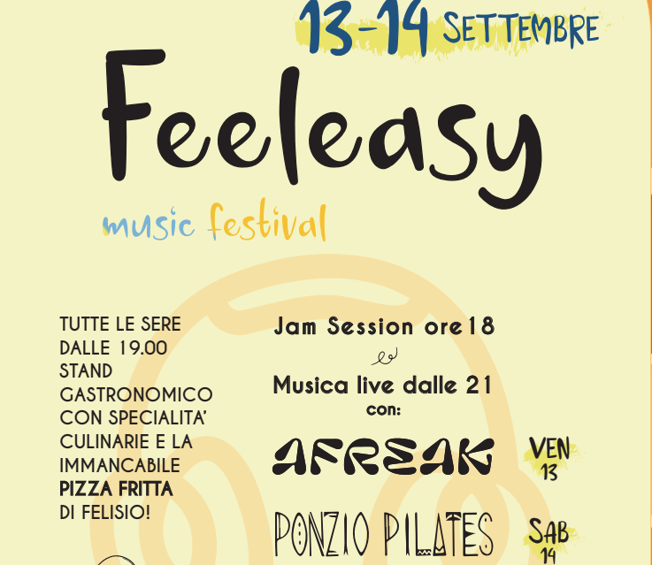 Venerdì 13 e sabato 14 settembre in via Felisio 61 a Solarolo si terrà la prima edizione di Feeleasy Music Festival.
