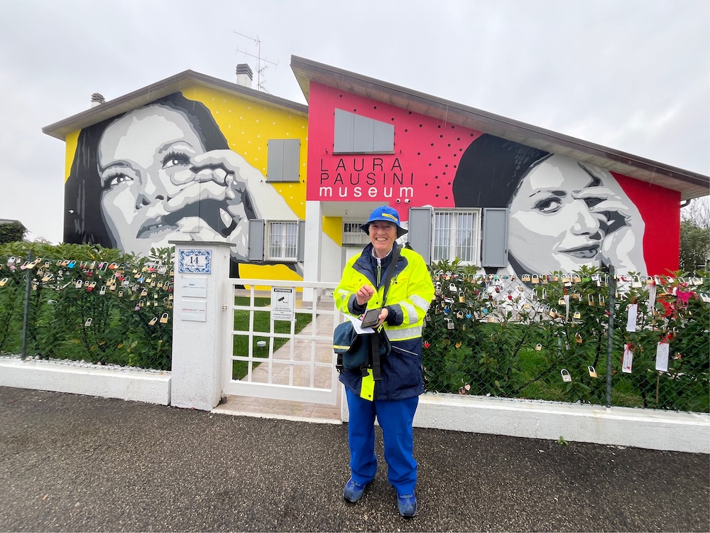 Gianna Ranaldi, postina di professione ma quando occorre anche “Cicerone” e soprattutto punto di riferimento per le persone anziane che vivono da sole. Originaria di Bagnara di Romagna, dal 1988 è une delle portalettere che serve la zona agricola del ravennate e da sei anni proprio la cittadina di Solarolo. In ogni condizione atmosferica, tutti i giorni, Gianna arriva dal centro di distribuzione di Lugo di Poste Italiane per portare la corrispondenza agli abitanti. Con la sua inconfondibile divisa gialla, ne conosce strade, persone e addirittura i segreti ed è per questo che spesso è lei stessa a suggerire ai fan che si recano a Solarolo i luoghi di Laura. “Venire a Solarolo – spiega Gianna – è un viaggio immersivo attraverso le tappe dell’infanzia di una cantante e persona straordinaria, anche se non la conosco personalmente. È una tappa fondamentale per chi vuole entrare davvero nel cuore di una storia fatta di musica e armonia”