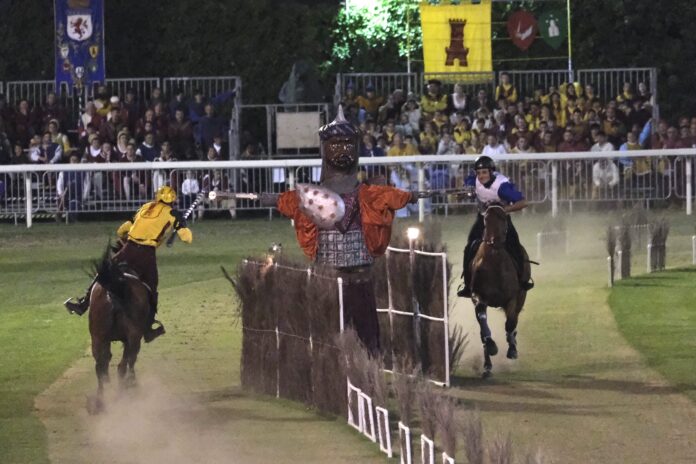 E’ il Borgo Durbecco ad aggiudicarsi il 25esimo Torneo della Bigorda d’Oro con l’ottima prestazione del suo Cavaliere Enrico Gnagnarella che conduce una gara quasi perfetta e va a segno con sette scudi su otto. Secondo classificato il Rione Giallo con quattro scudi e al terzo posto il Rione Rosso, sempre con 4 scudi. Quarto posto per il Rione Verde con tre scudi, e a infine il Rione Nero con due scudi. A sfidarsi a singolar tenzone sul campo di gara sono Davide Ricci del Rione Giallo su Ramona Danzig, Andrea Liverani del Rione Nero su Doublethink, Enrico Gnagnarella del Borgo Durbecco su Princess de Rio, Daniele Leri del Rione Rosso su Vanilla Cream e Stefano Venturelli del Rione Verde su Guaderiann. Al termine del Corteo storico e prima della competizione, il Borgo Durbecco è stato premiato da Paolo Caroli (Ascom) per il Miglior Gruppo Giovani e Giovanissimi del Corteo storico, riconoscimento assegnato dalla Deputazione per il Palio. Premiato infine dal Sindaco Magistrato dei Rioni Massimo Isola, Gertian Cela del Rione Giallo, vincitore della Bigorda D’oro 2022, con premio offerto da Gioielleria Gioie.