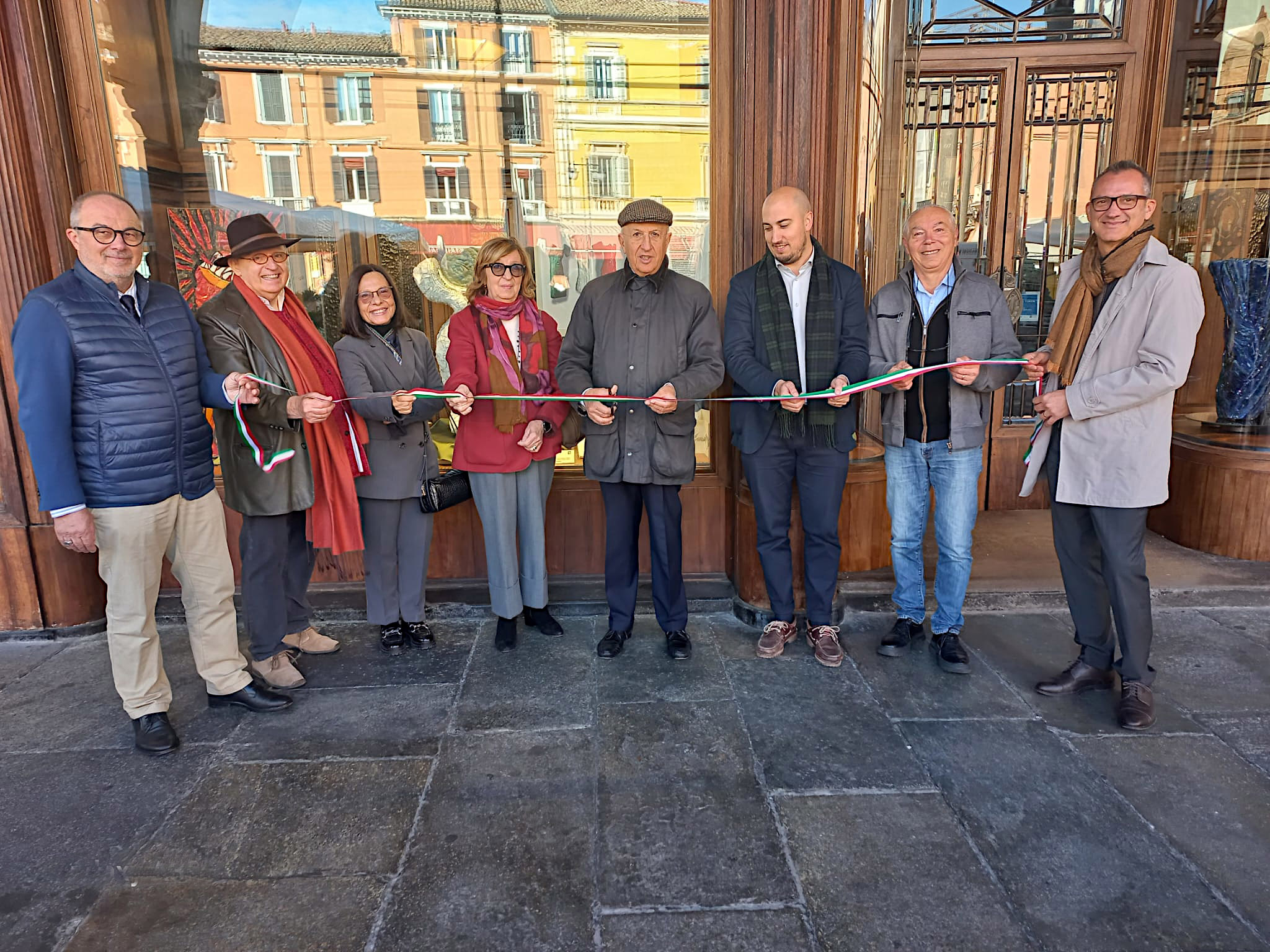 E’ stata inaugurata al Private Banking della Cassa ex negozio Bubani in piazza del Popolo la mostra sulla ‘Nike’ promossa da Silverio Gaudenzi e realizzata dall’artista mosaicista Verdiano Marzi nell’ambito delle iniziative per la Biennale del Mosaico. All’inaugurazione erano presenti il Presidente della Cassa di Ravenna Antonio Patuelli, la Presidente della Fondazione Cassa di Risparmio di Ravenna Mirella Falconi Mazzotti, il Vice Sindaco di Ravenna Eugenio Fusignani, l’Assessore alla Cultura Fabio Sbaraglia, il consigliere della Cassa e promotore della Mostra Francesca Fiorentini, il Direttore del Private Roberto Vicari, il committente Silverio Gaudenzi e l’artista Verdiano Marzi. Tra le opere del mosaicista, il trittico composto da figure mosaicate raffiguranti tre corpi femminili alati e acefali, liberamente ispirati al mito greco della Nike, divinità della Vittoria, è esposto ai Musei Byron e del Risorgimento. Le Nike sono atterrate a Ravenna volando da Parigi, dove furono create nel 2018: l’opera fu commissionata a Verdiano, residente in Francia, in occasione della ricorrenza del centenario della fine della prima guerra mondiale.
