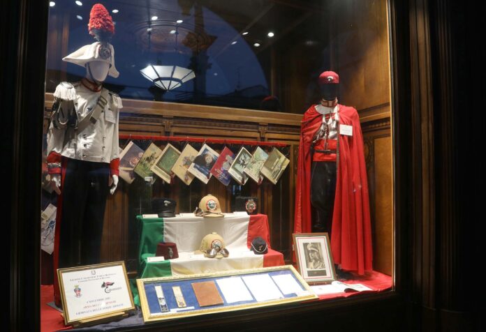 In occasione della Giornata dell’Unita Nazionale e delle Forze Armate, il Comando Provinciale Carabinieri di Ravenna, ha allestito, dal 30 ottobre al 5 novembre, presso i locali “Private Banking”, in piazza del Popolo n. 30, con la collaborazione de “La Cassa di Ravenna Spa”, una vetrina in cui saranno esposti cimeli ed oggettistica varia dell’Arma tra cui: una cornice contenente, in particolare la Croce di Guerra e la Medaglia d’Oro conferite al Ten. Col. Giovanni Frignani, al quale è intitolata la Caserma sede del Comando Provinciale Carabinieri di Ravenna, due “grandi uniformi” storiche, la prima da Zaptié libico, Carabiniere Reale Indigeno dell’Africa Settentrionale, componente dello squadrone di scorta al Governatore, in uso dal 1920 al 1941, e l’altra da Carabiniere Reale in servizio ad Addis Abeba (Etiopia), componente dello squadrone delle Guardie Vice Reali, in uso dal 1935 al 1940, calendari degli anni dal 1950 al 1959 e dal 1970 al 1979.