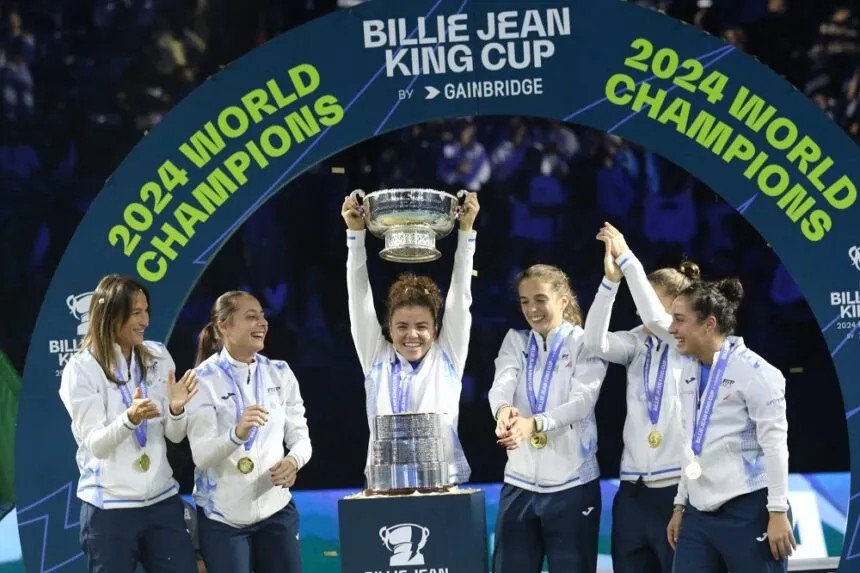 La Billie Jean King Cup è il trofeo istituito nel 1960 e assegnato alla nazionale femminile campione del mondo. Anch’essa è detenuta dall’Italia, che l’anno scorso l’ha conquistata con la squadra formata da Errani, Paolini, Cocciaretto, Bronzetti, Trevisan e capitanata da Garbin. Denominata in precedenza Federation Cup, è stata così ribattezzata nel 2020 in omaggio alla tennista statunitense Billie Jean King, oggi 81enne, in passato tra le fondatrici della Women’s Tennis Association e sostenitrice della lotta al sessismo nello sport. L’Italia ha vinto questa competizione cinque volte. E nel 2024, per la prima volta nella sua storia, il tennis italiano ha fatto la doppietta, trionfando a livello mondiale sia con la nazionale maschile che con quella femminile.