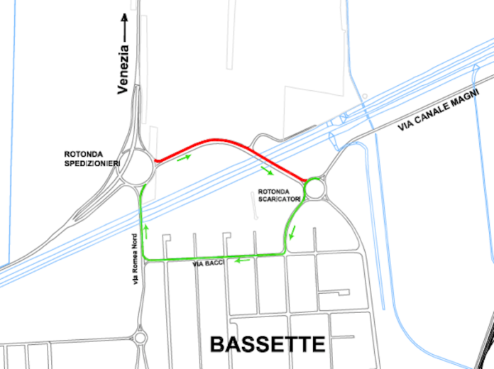 L’intervento riguarda sia il tratto a doppia corsia, che va dalla rotonda degli Spedizionieri su via Romea Nord alla Rotonda degli Scaricatori in zona Bassette, sia il tratto ad una corsia per senso di marcia che va dalla rotonda degli Scaricatori alla rotonda degli Ormeggiatori.