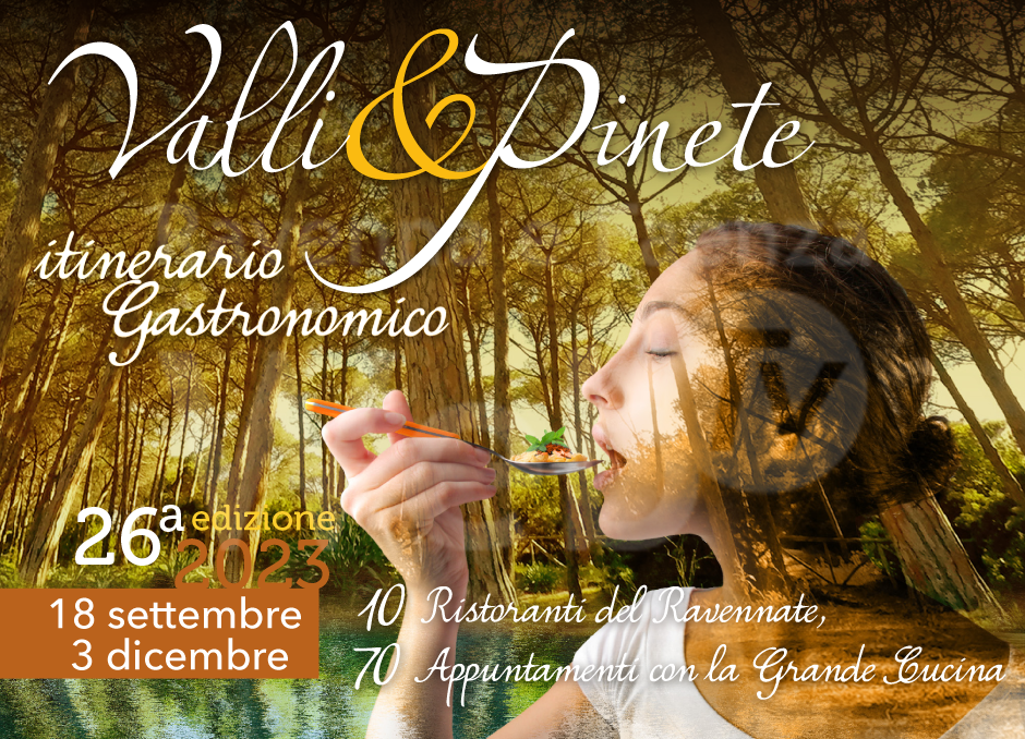 Valli & Pinete raggiunge quest’anno la 26ª edizione, segno di un apprezzamento sempre importante. L’iniziativa nasce nel 1998, quando il Sindacato Ristoratori Confcommercio Ravenna decise di dar vita ad un nuovo “percorso” gastronomico per far riscoprire, a ravennati e non, le pietanze e le ricette tipiche, sposandole con ottimi vini locali e con un tocco di creatività.