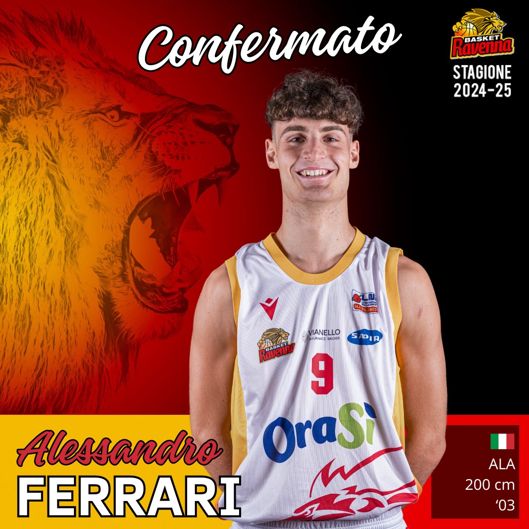L’OraSì Basket Ravenna comunica il rinnovo di Alessandro Ferrari per la prossima stagione. Nello scorso campionato l’ala giallorossa ha viaggiato a 9,1 punti e 5,2 rimbalzi con il 60% nel tiro da due punti, in 25 minuti d’utilizzo.