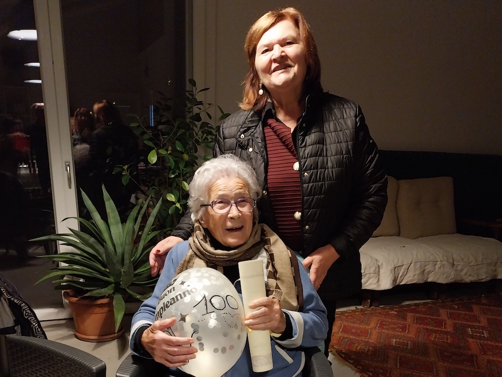 Oggi è ancora lucida e si dà da fare: ha aiutato a preparare i cappelletti per i suoi cento anni, pulisce i fagiolini, asciuga le posate; le piace leggere, scrivere e guardare la televiosione.