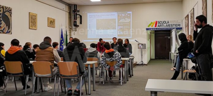 Nell’incontro di venerdì alcuni allievi del corso per Operatore Meccatronico dell’autoriparazione hanno dialogato con Simmaco Perillo, presidente della cooperativa Al di là dei sogni, che a Maiano di Sessa Aurunca (in provincia di Caserta), gestisce un’azienda agricola confiscata alla camorra. L’attività dà lavoro a persone con vissuti difficili e che, imparando un mestiere, hanno potuto intraprendere un percorso di crescita e riscatto personale.