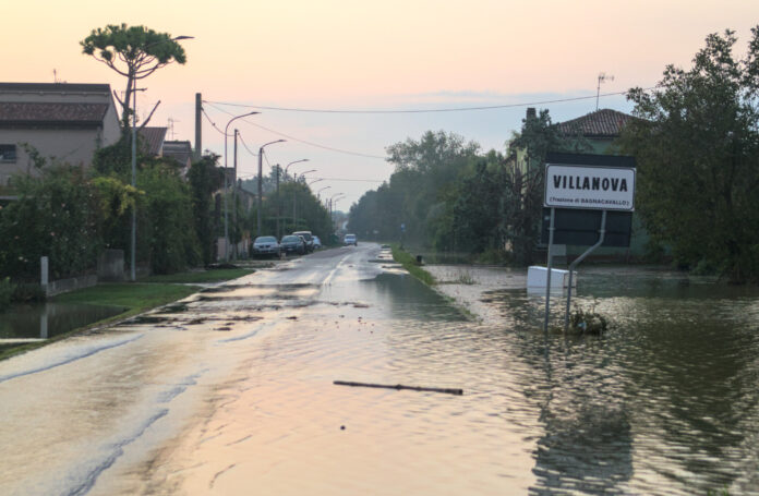 Villanova di Bagnacavallo raggiunta dall’acqua della piena del Lamone. Alle prime luci del giorno le prime strade hanno iniziato ad allagarsi. Tutta l’acqua che in questi giorni ha travolto la frazione di Traversara, sta raggiungendo nella mattinata di sabato Villanova. Via Cocchi, la strada che collega Villanova a Villa Prati è stata chiusa dalle autorità.