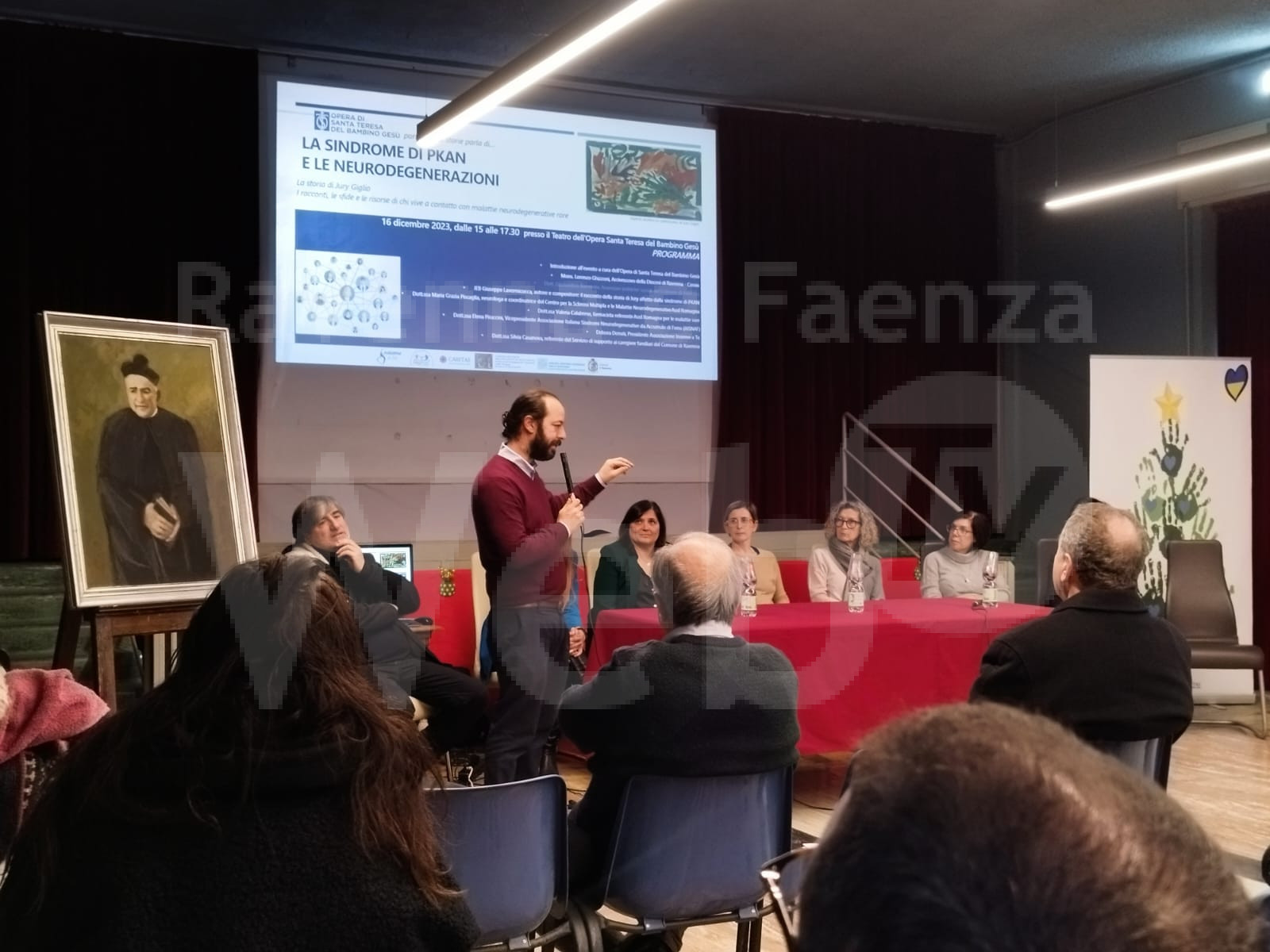 L’Opera di Santa Teresa del Bambino Gesù di Ravenna si è fatta promotore, sabato 16 dicembre, di un evento informativo e di sensibilizzazione sulle malattie neurodegenerative rare, partendo dalla storia di Jury Giglio, 43enne affetto dalla sindrome di Pkan. Jury, originario di Montemarciano, paese nell’anconetano, scopre la sua malattia all’età di 19 anni. Un giorno mentre si trovava a lavoro, cade per terra. Dai primi esami non emerge nulla, ma gli episodi di perdita dell’equilibrio iniziano a ripetersi con più frequenza, fin quando a ciò si aggiunge la difficoltà di aprire e chiudere la mano destra. I suoi genitori decidono di rivolgersi all’Istituto Neurologico “Carlo Besta” di Milano. Dopo una serie di accertamenti arriva la diagnosi: Jury ha la Pkan, una rara malattia neurodegenerativa, che porta a un accumulo di ferro nel cervello. A distanza di un anno e mezzo, anche a Loris, fratello di Jury, è diagnosticata la stessa patologia.