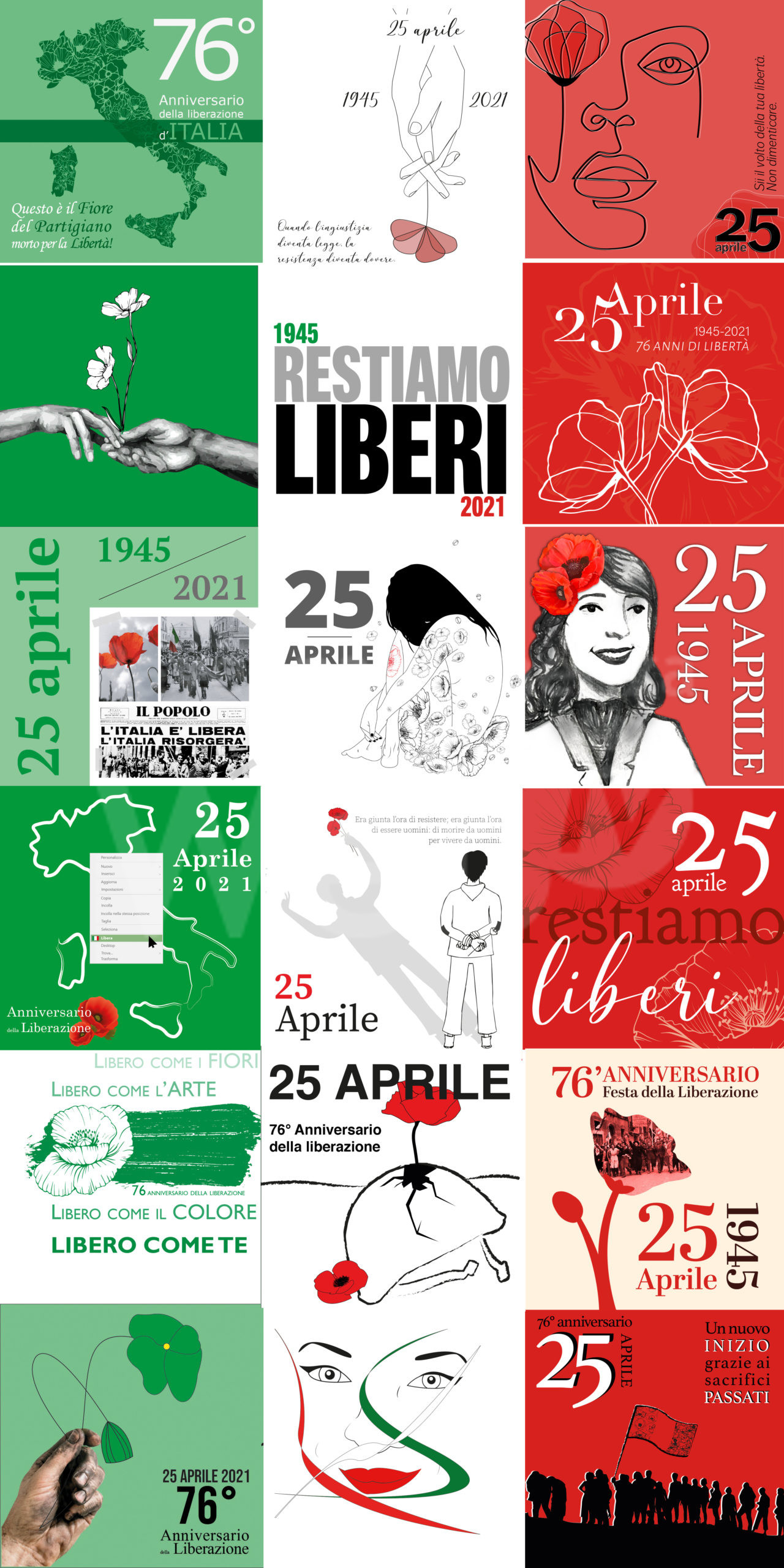 Riprendendo quell’idea iniziale, quest’anno, forse anche perché «spinti dal particolare desiderio di recuperare una certa libertà ‒ precisa Siboni ‒ pur nella necessità impellente di salvaguardare la vita umana, ridimensionata nel modo di vivere, di lavorare, di studiare, di relazionarsi, grazie anche alla fruttuosa collaborazione dei docenti di Lettere Cristiano Buffa e Denise Zoli, gli studenti del Grafico si sono accostati alla Resistenza con consapevolezza ed equilibrio nella conoscenza dei fatti storici, opportunamente guidati dagli insegnanti di Grafica nella realizzazione di elaborati significativi e di valida forza espressiva».