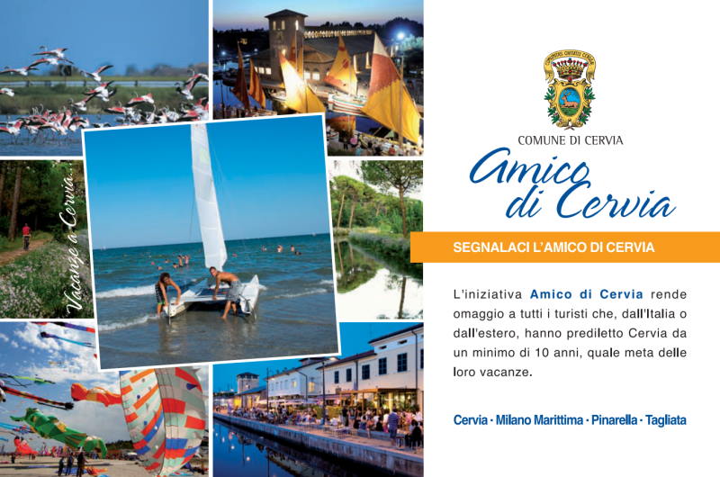 Amici di Cervia vuole essere un riconoscimento dell’Amministrazione Comunale verso quei turisti che nel tempo hanno soggiornato nella nostra località per almeno 10 anni consecutivi, dimostrando fedeltà, fiducia e affetto nei confronti della città e dei suoi gioielli: mare, pineta, saline, cultura gastronomica e strutture ricettive.