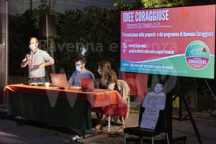Più di cento persone presenti fisicamente, oltre a una cinquantina collegate sulla piattaforma zoom o sulla pagina facebook. Una partecipazione notevole, forse inattesa nelle dimensioni e certamente benaugurante, ha caratterizzato ieri sera – nell’area esterna alla Ca’ Rossa – l’evento “Idee coraggiose”, con il quale Ravenna Coraggiosa ha presentato alla cittadinanza le idee programmatiche emerse da due mesi di lavoro degli otto tavoli tematici creati in vista delle prossime elezioni comunali.
