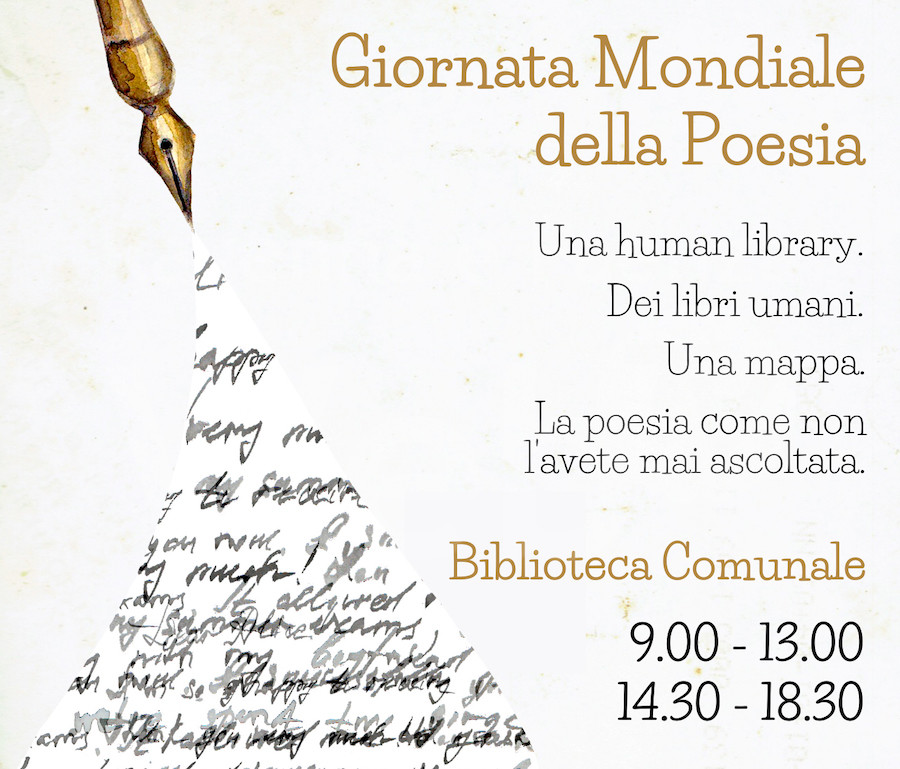 Lunedì 21 marzo, dalle ore 9.00 alle 13.00 e dalle 14.30 alle 18.30 in concomitanza con la Giornata Mondiale della Poesia, la Biblioteca Comunale si trasformerà in una human library.