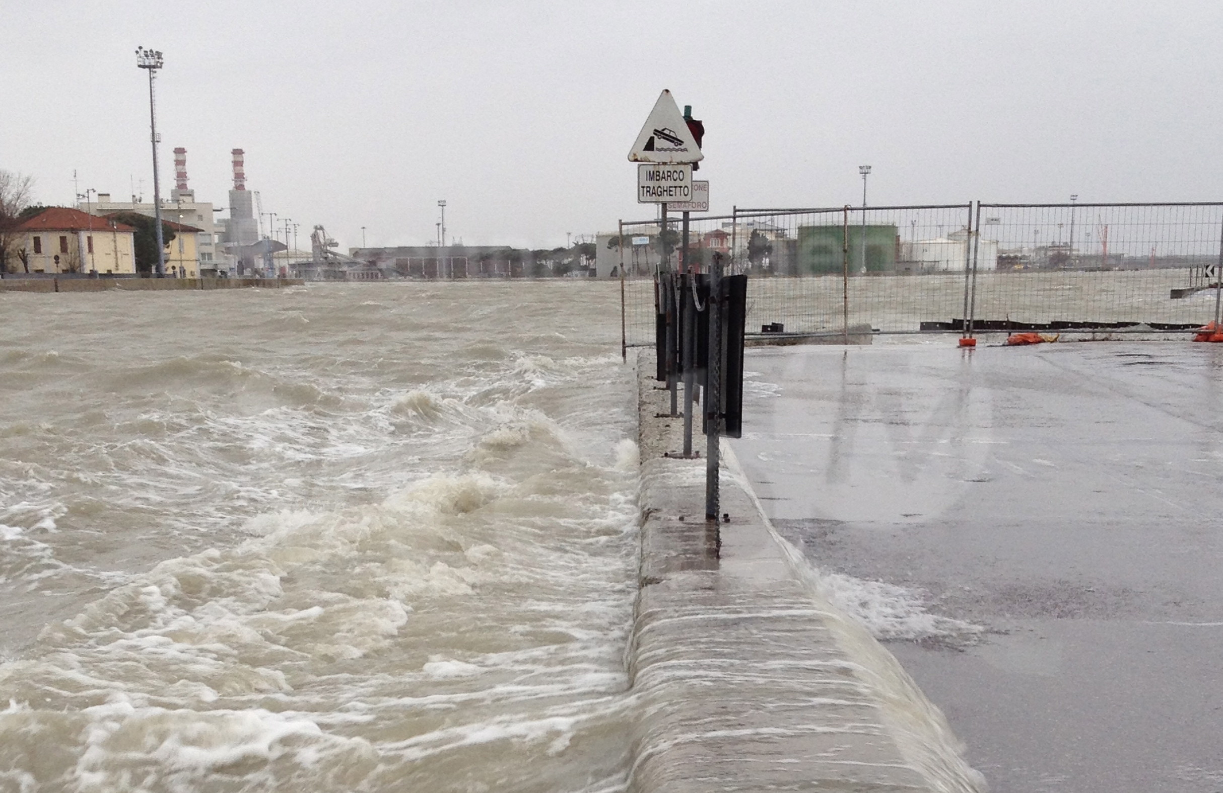 “Dall’altra parte del canale portuale, Porto Corsini sta però peggio. L’anno scorso, alla vigilia di Natale, il Comitato cittadino dei Lidi Nord si sollevò contro l’ennesimo frequente allagamento di via Molo San Filippo dalla parte della vecchia e abbandonata darsenetta del traghetto sul canale Candiano, accusando l’Autorità portuale di aver promesso da due anni e non mantenuto l’auspicato intervento di riqualificazione e messa in sicurezza della zona”.