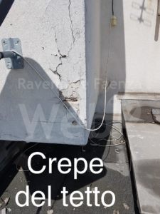 L’ascensore è stato reso funzionante alla meno peggio, ma è tuttora pericoloso per perduranti penetrazioni di acqua a ridosso dell’impianto elettrico e al suo interno. Ma è l’intero palazzo, negli alloggi, nel porticato e negli spazi interni comuni, nei soffitti, nei muri e nei pavimenti, ad essere danneggiato e mal ridotto da infiltrazioni d’acqua provenienti sia dal tetto, composto solo da carta catramata ovunque rigonfiatasi, sia dai bagni del primo piano. Vetri rotti alle finestrelle e cadute di calcinacci nelle parti comuni, tubi esterni del gas non protetti, le due fiancate laterali del palazzo vistosamente crepate e sgretolate, completano, neanche esaustivamente, un quadro letteralmente drammatico. Le 11 foto, con relativa dicitura, scattate dagli inquilini, rappresentano il seguente campione, significativo solo delle parti comuni, ma non perché gli appartamenti siano tutti messi bene: tetto di carta catramata crepato; cabine dell’ascensore allagate, ammalorate e con ferri scoperti alla parete e calcinacci a terra; cantine, corridoi delle cantine, garage e sottoscala delle cantine allagate dall’acqua in uscita dalla porta della caldaia di riscaldamento; corridoio delle cantine con depositi di escrementi umani delle suddette persone non normali; fiancata del palazzo sgretolata. Via Dorese 73 non è messa meglio, se mai peggio.