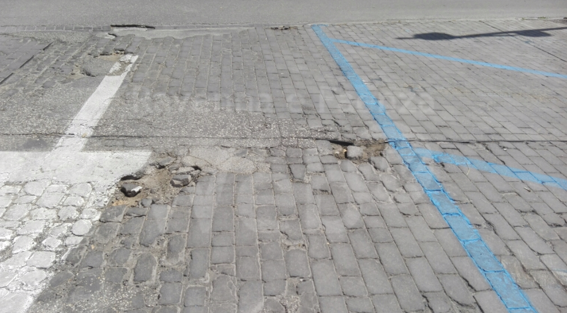 “L’interrogazione ha dimostrato, con un dossier fotografico drammaticamente eloquente, come la pavimentazione a cubetti del parcheggio che occupa interamente la piazza Mameli al netto delle strade perimetrali sia totalmente disastrata, coperta di pezze e rattoppi, di buche, sconnessioni e fratture, che ne rendono arduo e pericoloso il camminamento sui percorsi pedonali, oltreché a sbalzi l’entrata e l’uscita delle auto. Malridotto è anche il marciapiedi del lato commerciale, tra viale Farini e via Rocca Brancaleone, dissestato e difficoltoso, soprattutto per le persone in carrozzina o col girellino, addirittura sbrindellato e franato ai due lati del portone d’ingresso alla caserma della polizia municipale” continua Ancisi.