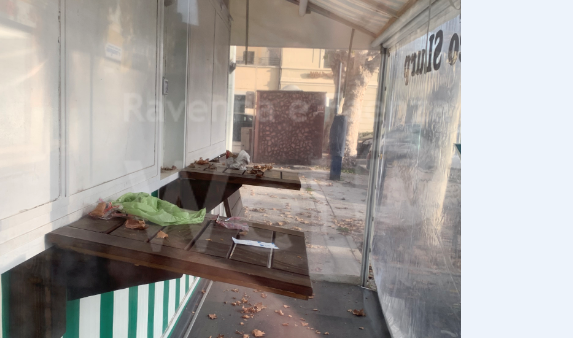 Nel 1998, quando già c’erano dei balordi che impiegavano malamente le zone d’ombra del manufatto, come aveva segnalato al sindaco Arnaldo Poggiali, il Comune concesse alla titolare del chiosco di triplicarne le dimensioni, ignorando proteste molteplici, tra cui quella di Lista per Ravenna. Sorse dunque un vero e proprio fabbricato fissato al suolo, con tanto di impianti fognario, elettrico, di riscaldamento e di condizionamento, canna fumaria e numero civico 15/a. Fu così chiusa la vista della piazza al villino retrostante, ma si diede soprattutto via libera al degrado pesante di questo fazzoletto di terra, occluso a sua volta alla visuale da ogni altro lato della piazza. Le premesse c’erano tutte. Dotato di toilette pubblica, fontanella, contenitori per caschi, cestini per rifiuti, casse del parcheggio attiguo, impianti di affissione, panchine, panettoni e paletti, ma privo di qualsiasi manutenzione, con l’asfalto dissestato e i platani abbandonati, questo luogo offriva, tra aree coperte ed aree scoperte, anfratti strategici per bagordare e delinquere in pieno centro senza essere scorti. Non tardò dunque a diventare terra di nessuno, pericoloso al transito e ancor più a sostarvi. Tanto che gli abitanti del villino, passato di proprietà dopo la morte di Arnaldo Poggiali in Argentina, vivono da allora come reclusi in casa.