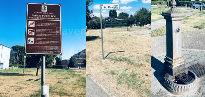 Essendo breve, riproduco di seguito l’intero testo dell’interrogazione: “Da almeno vent’anni, piazza Antonio Rosmini, adiacente a via Badiali e a viale Lercaro, laddove sorge il supermercato Lidl altamente frequentato, contiene al suo interno, in forma quadrata, senza una propria denominazione, un parco pubblico non da poco, essendo vasto 2.500/3.000 metri quadrati. Non è purtroppo fruito dai cittadini perché di parco ha solo il nome, essendo il verde ridotto a dieci alberi, quindi con scarsissima ombra, e per il resto spoglio e desertificato, con sei panchine esposte al sole perché lontane dagli alberi e perciò corrose, e una fontanella a cui è stato tolto il rubinetto. Sollecitati dai residenti in zona, chiediamo dunque al sindaco se intende attivare il servizio Ambiente del Comune di Ravenna, trattandosi di interventi di manutenzione e gestione di un’area di sua competenza, ai fini di riqualificare a vero parco piazza Rosmini, provvedendo a piantumarvi un maggior numero di alberi, nel frattempo collocando le panchine all’ombra di quelli esistenti, a renderne verde il terreno brullo interno ai percorsi e a riattivare la fontanella. In tal modo, l’aspetto sconfortante e deprimente dell’area lascerebbe il posto al vero parco che dovrebbe essere”.