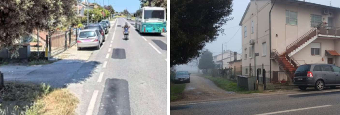 - Di qui la condizione difficile in cui versano, in particolare, tre famiglie residenti in altrettanti edifici posti nel viottolo privato che fa capo, in angolo, col civico 149, composte da sette persone, di cui tre della terza età. Per loro, immettersi con l’auto su via Cella è “tutte le volte una roulette russa”. Si aggiungono infatti al traffico frenetico le auto parcheggiate stabilmente sulla banchina laterale, in violazione dell’art. 157, comma 3, del codice della strada, che, ostacolando la visuale, impediscono ai mezzi in uscita dal viottolo di scorgere per tempo l’arrivo a tutto gas dei veicoli provenienti da Madonna dell’Albero. Uno specchio parabolico posto da un privato sul fronte opposto della strada, oltre ad essere di scarse dimensioni e situato a distanza eccessiva, risulta utile solo di sera, quando i veicoli in transito su via Cella hanno i fari accesi e non c’è nebbia né umidità che lo offuschino. Il parcheggio abusivo di auto sulla banchina obbliga peraltro i pedoni diretti alla fermata bus o ai cassonetti della raccolta differenziata a camminare sulla carreggiata a rischio di collisione col traffico motoristico.