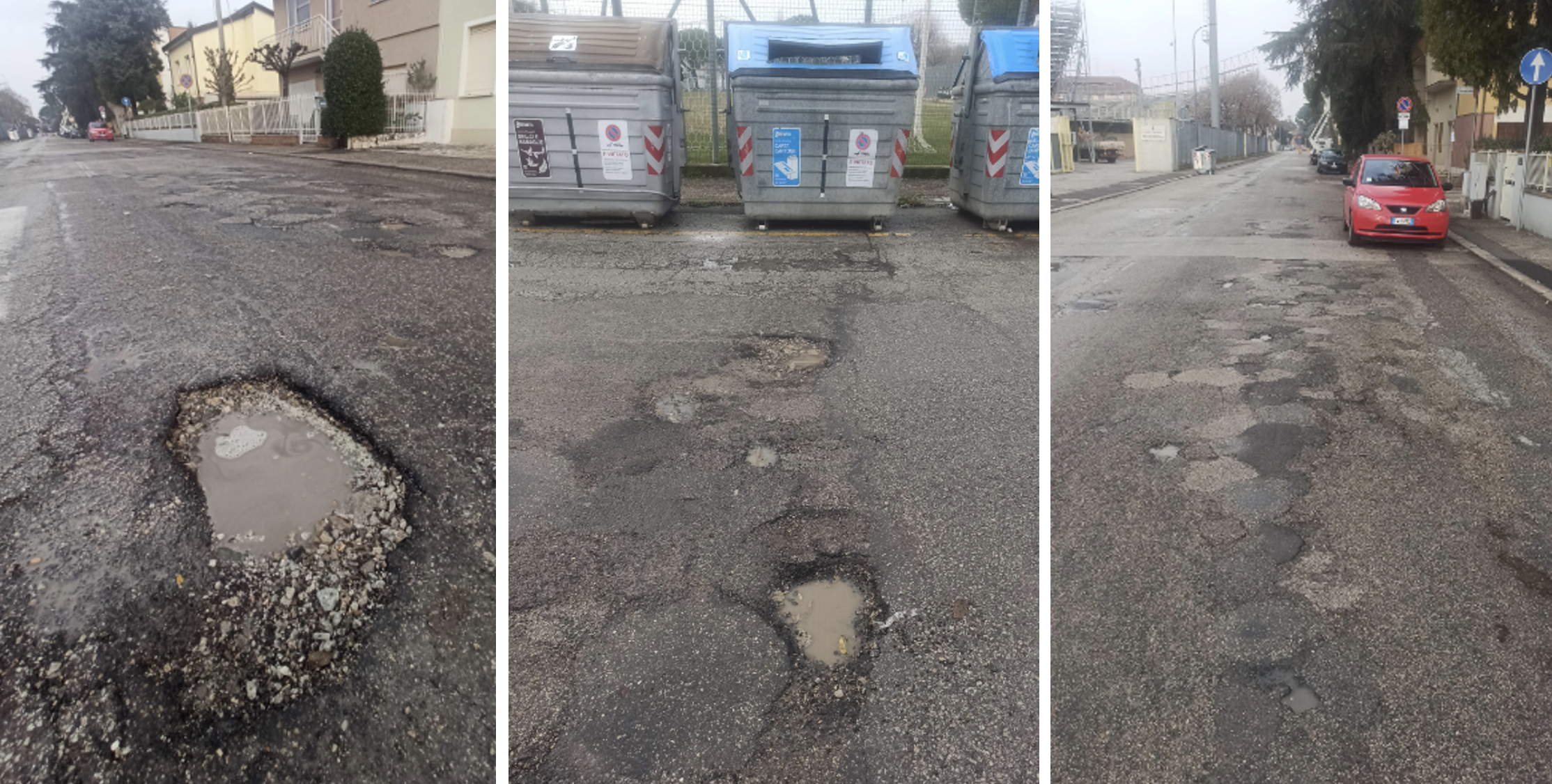 La situazione è però notevolmente peggiorata, diventando anche pericolosa. In prossimità proprio dell’incrocio con via dei Bersaglieri, si è aperta infatti, all’altezza del punto di frenata, una profonda spaccatura. Le auto, mentre frenano, sprofondano nel buco andando a finire nel mezzo dell’incrocio, col grave rischio di scontrarsi con veicoli o passanti provenienti dalle altre direzioni.