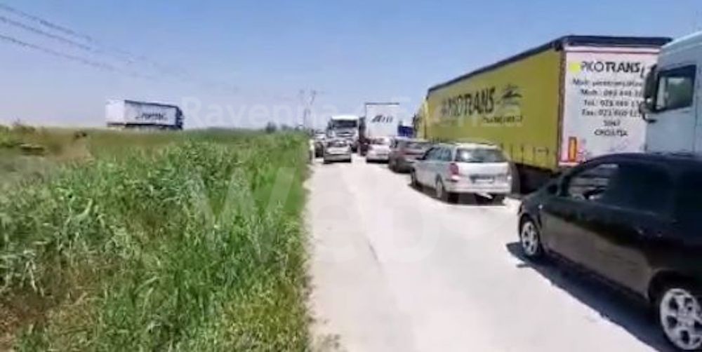 “Via Baiona, stretta strada di 10 chilometri e mezzo del Comune di Ravenna, è la sola che colleghi direttamente Ravenna con Porto Corsini e i lidi nord. L’allarme sull’incapacità a reggere la forsennata commistione di traffico automobilistico e pesante che la percorre incessantemente è stato lanciato molte volte da Lista per Ravenna. Mai ricevuto risposta, neppure quando, il 5 febbraio 2019, in vista del nuovo grande deposito costiero della PIR, vicino a Porto Corsini, per lo stoccaggio e la movimentazione di gas naturale liquefatto (GNL), segnalammo che avrebbe riversato su questa strada 60 autocisterne al giorno. Da sempre, via Baiona è però indispensabile affinché ogni giorno raggiungano il posto di lavoro i 1.500 dipendenti, diretti e indiretti, dello stabilimento Marcegaglia, insieme a 400 camionisti e 50/60 corrieri locali, ma anche (siccome questa industria, come molte altre aziende sulla via Baiona, è anche un terminal dello scalo di Ravenna) le agenzie marittime e le imprese che svolgono attività e servizi portuali. Si aggiunge poi il traffico altrettanto industriale e commerciale della Sibelco, dell’Italcementi, dell’Alma Petroli, della Bunge, della centrale ENEL, della SAI, della PIR stessa, della Novaol, ecc. Naturale che via Baiona serva inoltre a chi risiede o lavora o ha la seconda casa nei tre lidi nord e ai turisti diretti in queste località, specie nella stagione balneare. Da ultimo, è entrato in scena lo sviluppo del porto crocieristico di Porto Corsini, il quale raccoglierà 300 mila passeggeri più 30 mila addetti solo nel 2022, con l’effetto di 6.000 pullman in un anno e di 21 tir da 18 metri per rifornire ogni nave gigante in arrivo: tutti obbligati a sbattersi su una via Baiona tal quale dal dopoguerra ad oggi.
