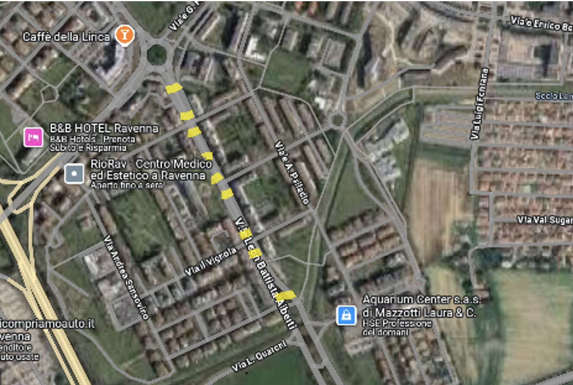 L’interrogazione al sindaco, presentata da Lista per Ravenna nel 2021, su “Viale Alberti in alta velocità, pedoni a rischio sugli attraversamenti”, mise a fuoco alcune potenziali soluzioni di rallentamento della velocità, che però non hanno prodotto alcun risultato, anche se, sull’attiguo viale Randi, in situazioni analoghe prossime all’ospedale e alla caserma dei Vigili del Fuoco, sono stati installati due passaggi pedonali protetti da un impianto semaforico.