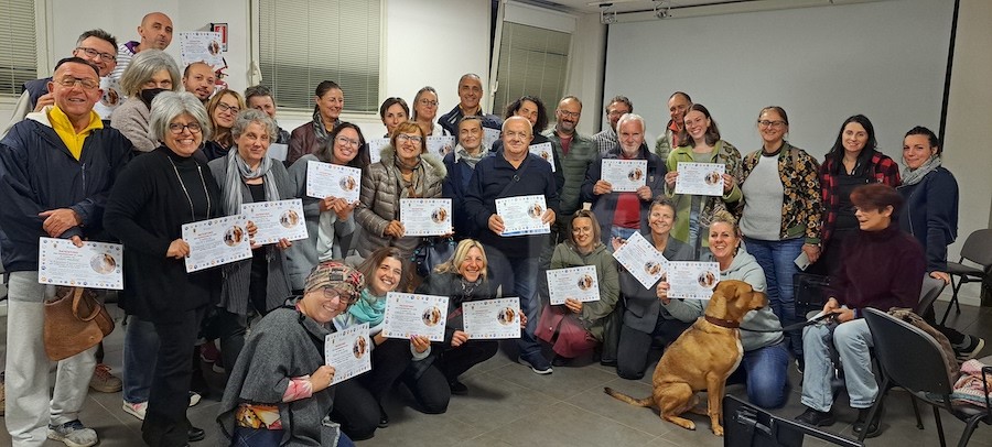 Si è concluso con successo, test finale, e consegna dei patentini, il percorso formativo riservato ai proprietari e futuri proprietari di cani iniziato il 6 ottobre, che si è svolto il giovedì sera nei mesi di ottobre e novembre.Si tratta di una delle azioni previste dal Ministero della Salute per educare ad un corretto rapporto con i cani, che ha lo scopo di limitare il fenomeno degli abbandoni e del randagismo.