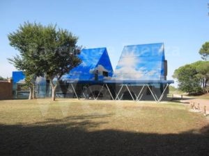 Basterebbe però, per rendere meno traumatico accostarsi a questo edificio, agire sulle superficie esterne con una trasformazione pittorica e/o grafico/artistica che si ispiri alla luce piuttosto che al buio, al “volare in cielo” (laicamente) piuttosto che al “tornare in terra”. Un esempio tra i meno impegnativi potrebbe essere ridipingerle con un Blu Brillante, magari tra nuvole bianche.