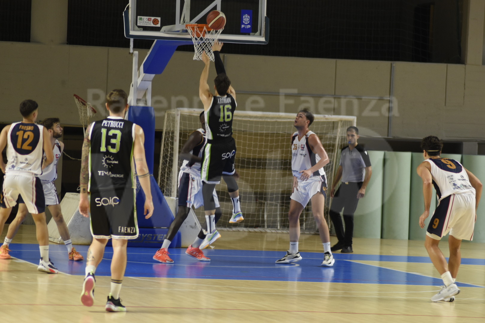 Taranto parte forte portandosi sul 13-4, ma Faenza risponde alla grande grazie alla difesa, ricucendo subito il gap. Sotto canestro Aromando e Papa si fanno valere a suon di punti e rimbalzi, anche se il sorpasso lo firma Galassi con una tripla (22-19). Minuto dopo minuto i Blacks prendono in mano l’inerzia del match, non riuscendo però a respingere gli attacchi dei pugliesi, trascinati da Conte e da Thioune e così all’intervallo i faentini sono avanti soltanto di quattro lunghezze: 38-34.