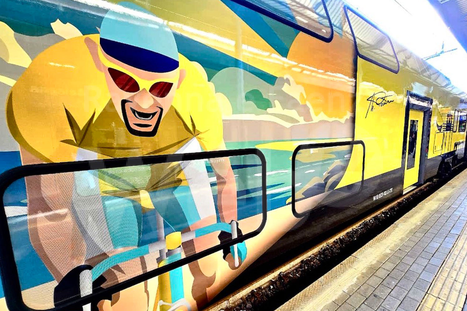 In vista della partenza del Tour de France dall’Emilia-Romagna il prossimo 29 giugno da Firenze, un treno regionale ‘Rock’ giallo percorre i binari dell’Emilia-Romagna.
