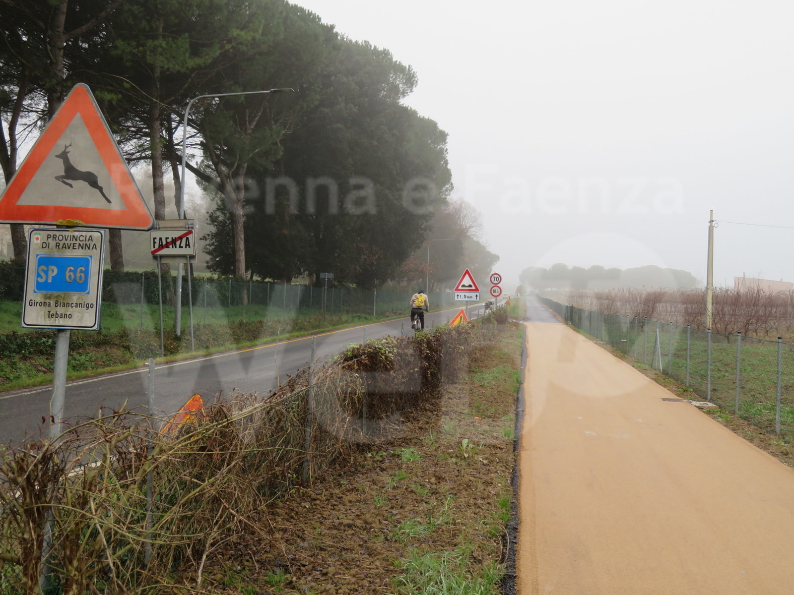 L’intervento prevede inoltre, all’incrocio tra via Dottora e via Ospitalacci, sul lato opposto della pista un marciapiede, già realizzato, lungo un centinaio di metri che corre sopra al vecchio canale di scolo ora tombinato. Il marciapiede verrà illuminato con lampioni mentre la pista ciclabile e i due attraversamenti pedonali, compreso quello di via canal Grande, sarà dotata di un sistema a led ad alta visibilità per i pedoni che gli operai stanno provvedendo a installare in questi giorni. Dopo aver steso l’asfalto, per il completamento dell’opera, manca solo da realizzare la segnaletica verticale e quella orizzontale. Il costo complessivo è stato di 380mila euro.