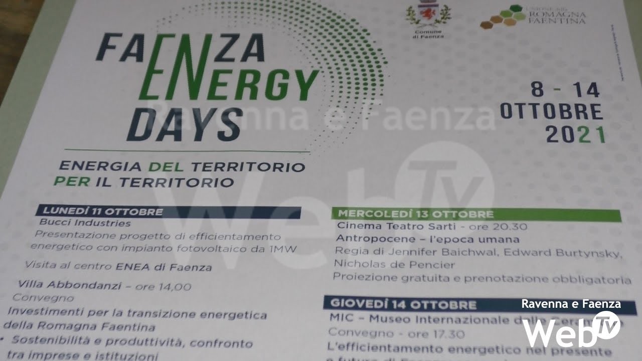 Arrivano a Faenza gli Energy Days, una serie di appuntamenti organizzati per parlare dei temi dell’energia sostenibile e circolare insieme alle aziende del territorio. È un primo passo verso quello che l’amministrazione ha definito il distretto dell’energia green della Romagna Faentina. Si inizierà l’11 ottobre con il Gruppo Bucci il nuovo impianto fotovoltaico per migliorare l’efficientamento energetico. A Villa Abbondanzi nel pomeriggio un convegno dedicato agli investimenti per la transizione enegetica. Il 12 ottobre appuntamento online per gli studenti per parlare di risparmio ed efficienza insieme a Michele Dotti. Il 13 sera, al cinema Sarti, il documentario Antropocene, come l’uomo ha cambiato la natura. Giovedì 14 nuovo convegno al Mic sull’efficientamento energetico. Dall’8 al 10 ottobre open day al Gruppo Tampieri, che, insieme a Caviro, Enomondo e Gruppo Cura, è partner del progetto.