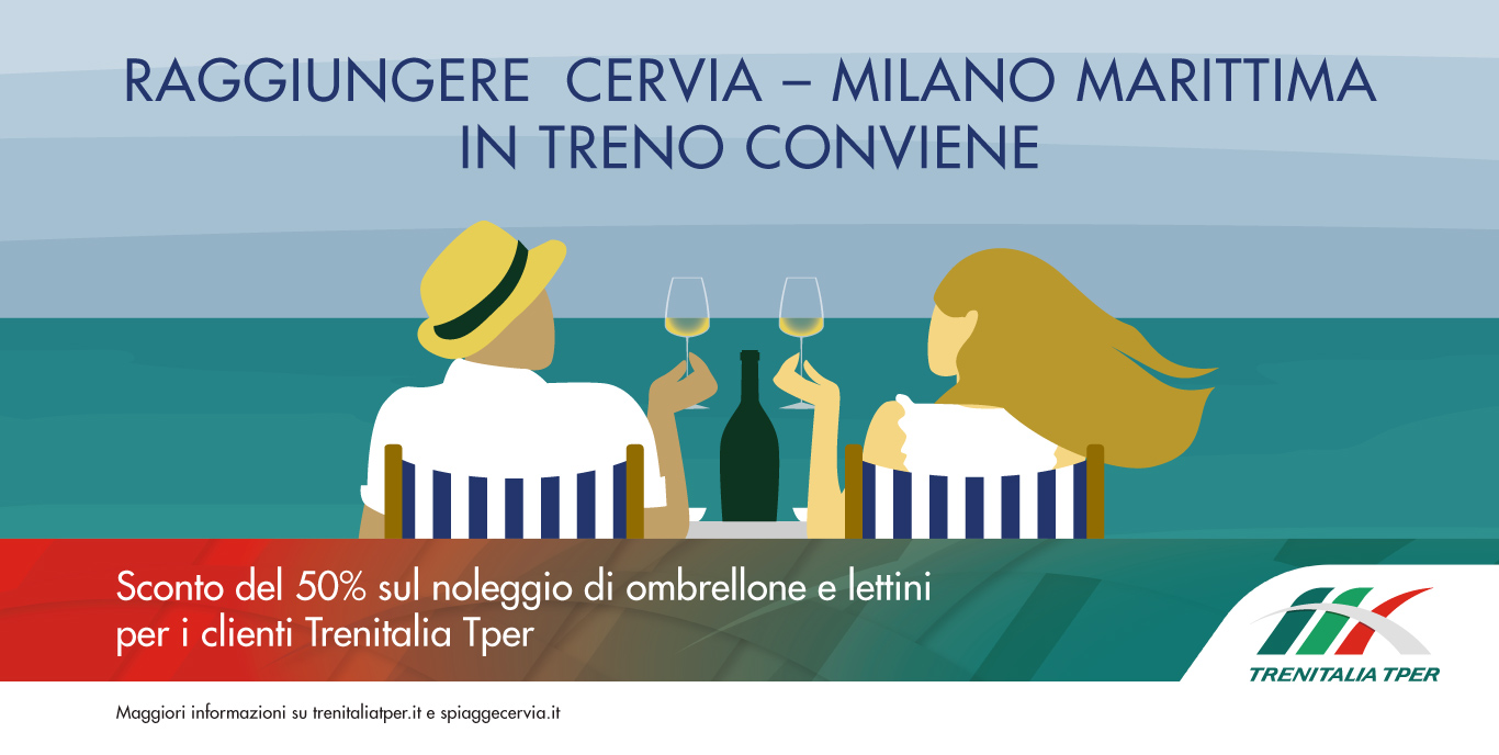 La promozione è frutto di un accordo commerciale fra Trenitalia Tper e la Cooperativa bagnini di Cervia per incentivare l’uso del treno e promuovere la vacanza Green sulla spiaggia cervese.