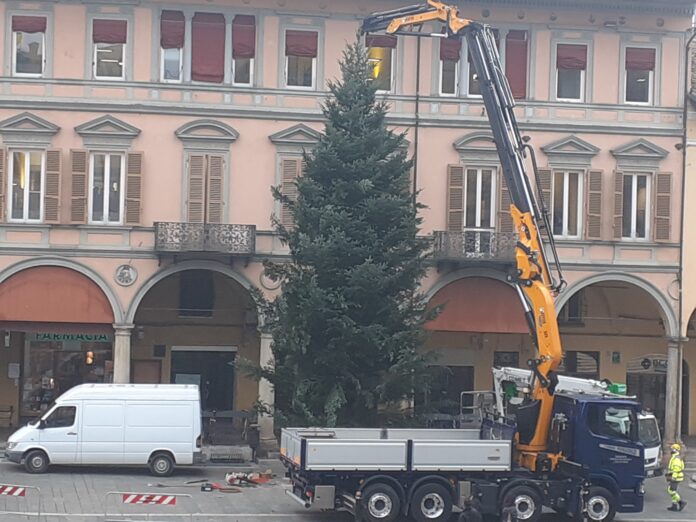 Iniziata in piazza della Libertà l’installazione dell’albero di Natale di Faenza. Anche quest’anno l’addobbo dell’albero, per il terzo anno consecutivo, sarà affidato al gruppo Christmas Dancing Lights, coordinato dai fratelli Roberto e Mauro Gorini.