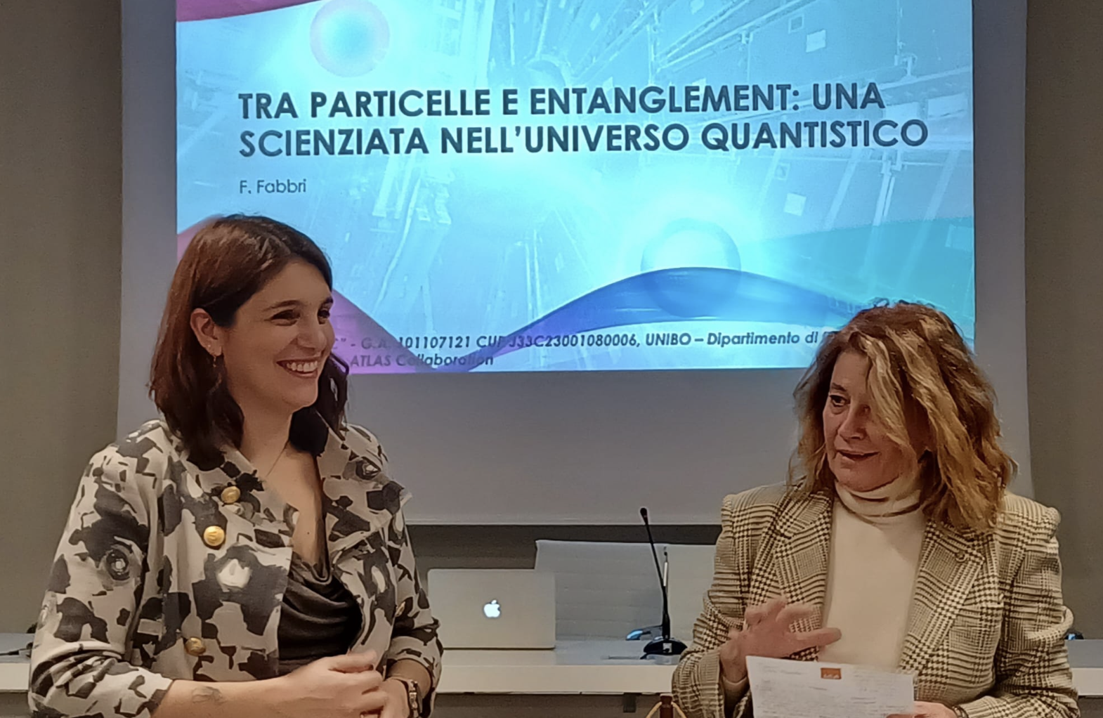 Nel corso della serata, che è stata introdotta dalla Presidente Oriella Mingozzi, la dott.ssa Fabbri ha illustrato anche il suo percorso professionale, partito dagli studi al Liceo scientifico Oriani di Ravenna, proseguito con il conseguimento della laurea in fisica all’Università di Bologna, proseguito con la tesi di dottorato sul quark top e con interessantissime esperienze di ricerca effettuate all’estero (al Cern di Ginevra e in altri istituti internazionali), dove ha avuto modo di lavorare in équipe con altri studiosi, confrontandosi con colleghi e approfondendo le tematiche di interesse legate allo studio delle particelle, agli acceleratori e alle loro interazioni. Questo le ha dato modo di coordinare diversi gruppi di ricerca e di avere all’attivo ben 600 pubblicazioni su riviste scientifiche specializzate, nelle quali risulta essere autrice o coautrice.